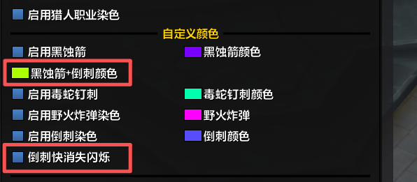 黑箭染色新增 黑箭+倒刺染色选项,以及倒刺快结束血条闪烁功能(3秒内)